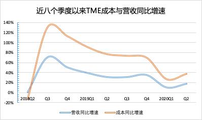 即便一直财务稳健的腾讯音乐娱乐集团,也同时面临着成本不断抬高,且显著高于营收增速的困境。