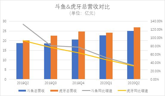 从收入规模上看,二季度斗鱼总营收25.082亿元,虎牙总营收26.97亿元,二者的营收增速基本持平;从收入构成上看,斗鱼从分布均衡转向依赖直播收入,而虎牙路线正好相反,二季度斗鱼直播收入23.199亿元,占总营收比重92%,虎牙直播收入25.65亿元,占总营收比重95%。