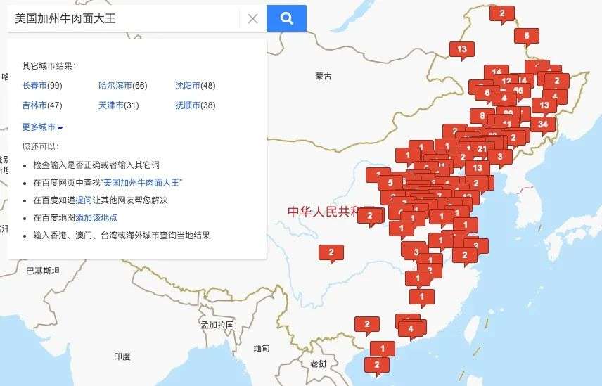 就连韩国和日本都有美国加州牛肉面大王的身影