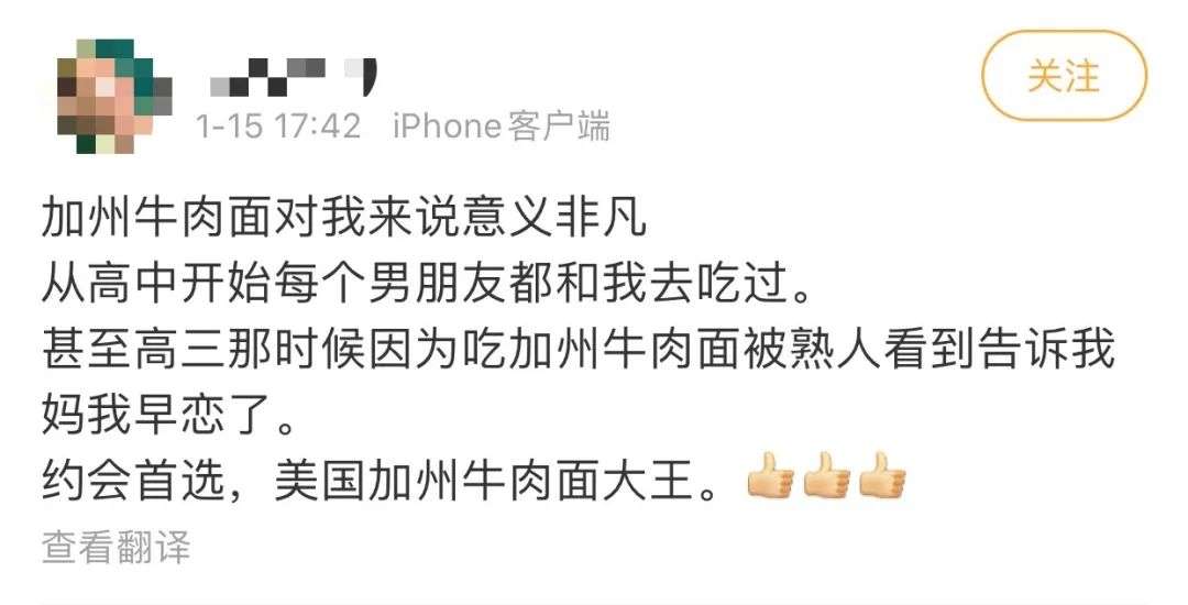 “一直觉得美国加州牛肉面大王这名字取的挺洋气的。”