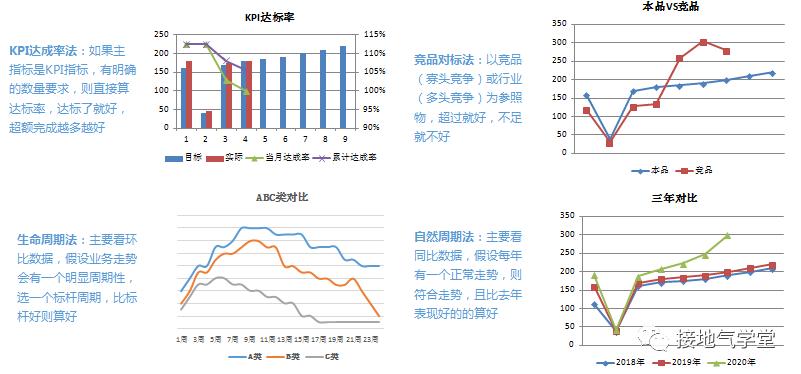 可实际上,大部分新人都是:不懂寻找标准,只知道罗列数据。因为标准问题常常被忽视,甚至很多工作5年的老人,一张嘴都是:“这个习惯上算好”,至于习惯到底是啥,根本说不清楚。甚至很多网上教数据分析的课,都是教:“跌就是不好,涨就是好,跌了要搞高!”真让人怀疑这些网课老师有没有坐过正经公司的办公室。