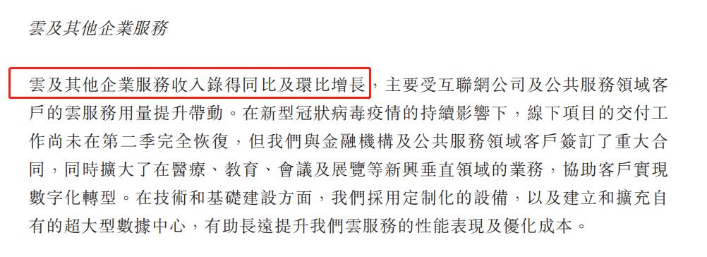此次财报中,未披露“云及其他企业服务”的细节,只是定性为“环比和同比都稳步增长”;但是可以预见,随着中国经济结构转型与产业结构升级的大背景下,政务、商务、工业、金融等领域“上云”的需求将持续增加,云业务终将成为腾讯业务爆发的下一个环节。