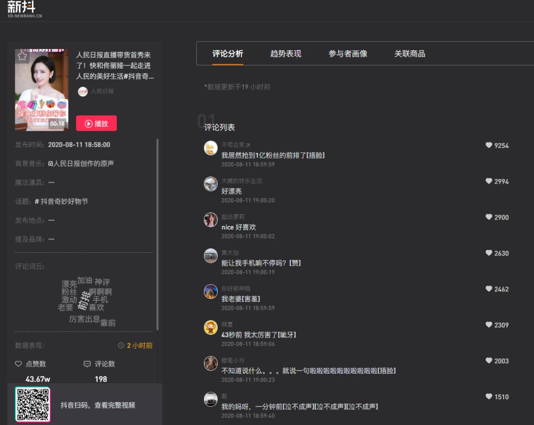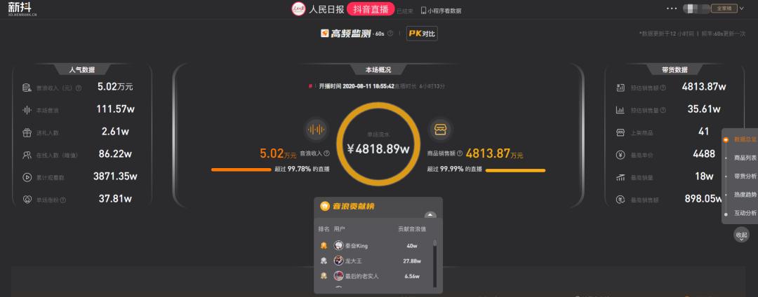 人民日报抖音带货首秀卖了4800万,我们用新抖数据看了看