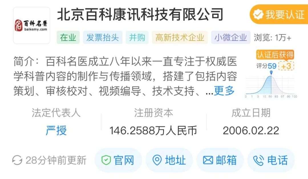 公开资料显示,百科名医成立于2010年5月,一直专注于权威医学科普内容的制作与传播。旗下的医学内容平台百科名医网,是“国家卫健委权威医学科普项目”唯一指定网站。