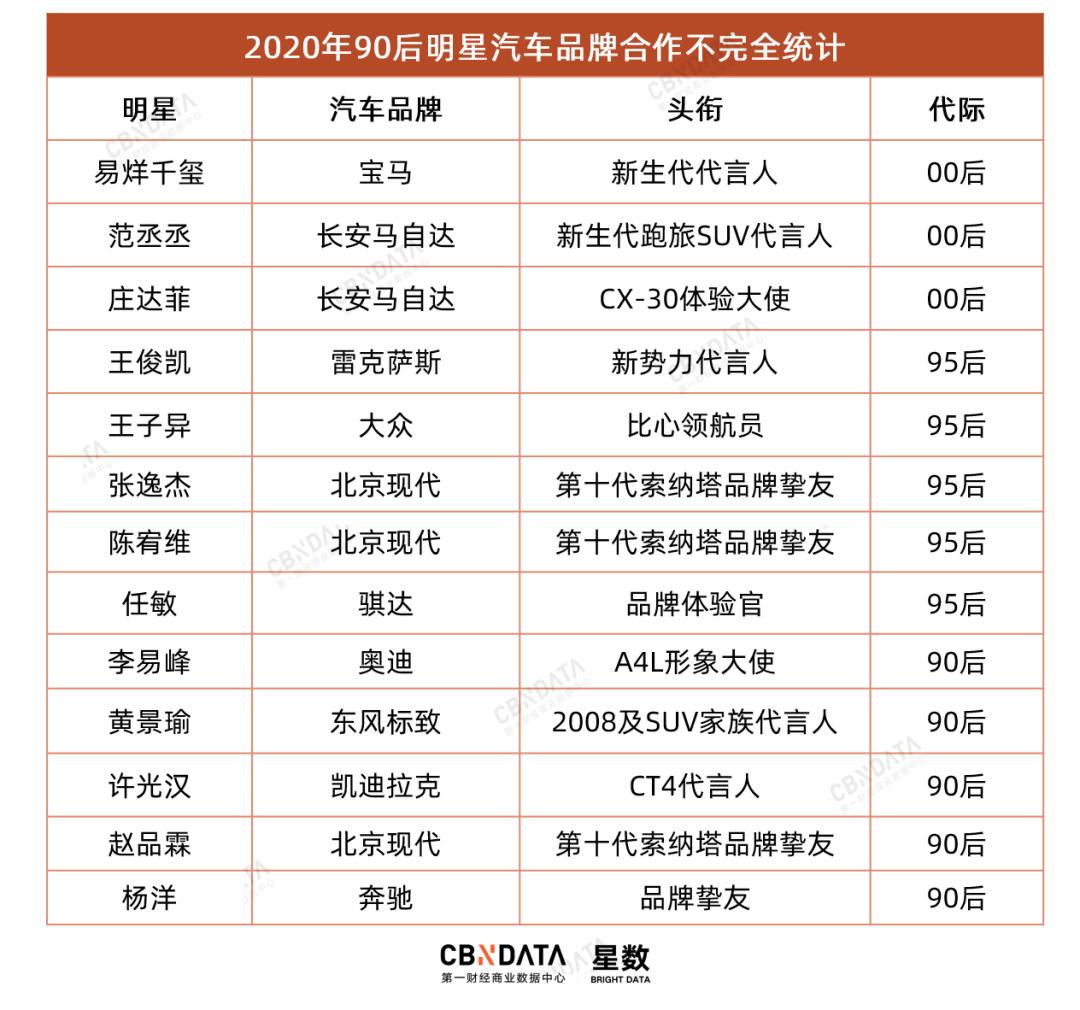 易烊千玺的宝马代言就像一个燃点,点燃了汽车品牌寻找明星代言人的热情。