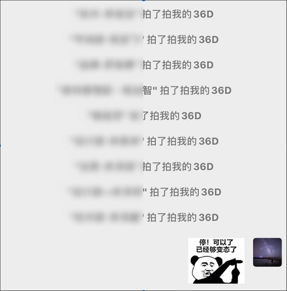 非正式性也赋予了「拍一拍」在另一个方面的潜力——事实上很多人已经亲身实践过了——那就是关于身体和性的谈论。社会文化规范使得与身体相关的词语带有轻微的禁忌性,促使这些话题在正式的语场下隐没。不过,「拍一拍」正好代表了「不正经」的话语场合,这给了很多人放下负担,通过修改后缀「开车」的机会。朋友之间可以随意地「拍拍屁股」、「拍拍 36D」、「拍拍脑壳」,正是因为「拍一拍」本身就意味着「我在开玩笑,别往心里去」。