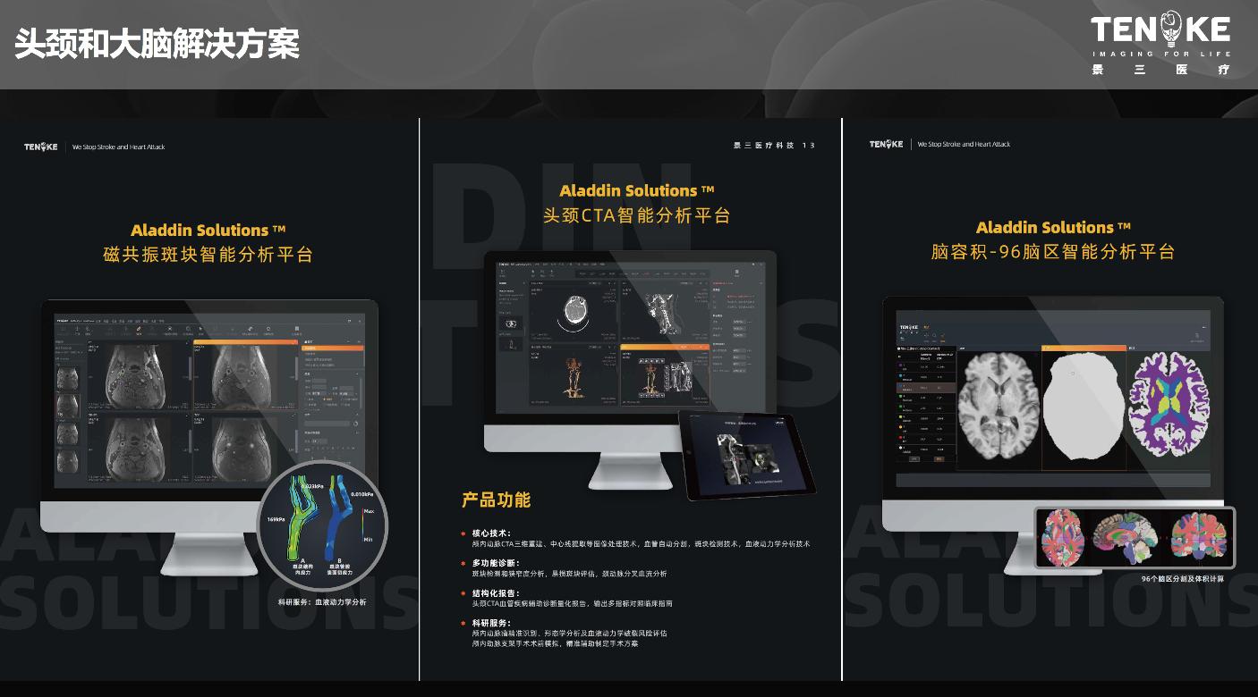 对此,「景三科技」已攻克了核心技术,并有相关产品落地,具体包括磁共振头颈斑块分析系统、冠脉CTA和钙化积分智能分析系统、脑容积-96脑区精细分析系统等产品。