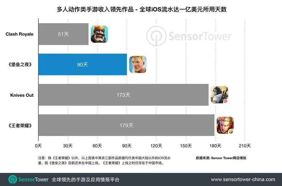Sensor Tower估计数据显示:过去30天,Fortnite在全球苹果App Store获得240万次下载,以及4340万美元的收入。截至目前,这款游戏在全球App Store累计下载量达到1.33亿,累计收入为12亿美元。
