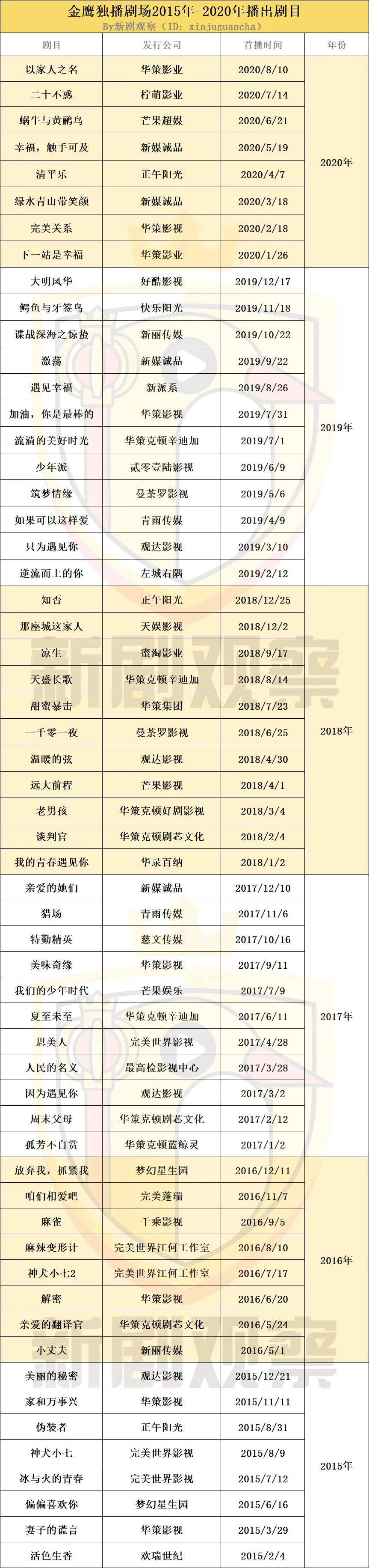 从金鹰剧场2015年—2020年播出剧目,看各大电视剧公司发行实力