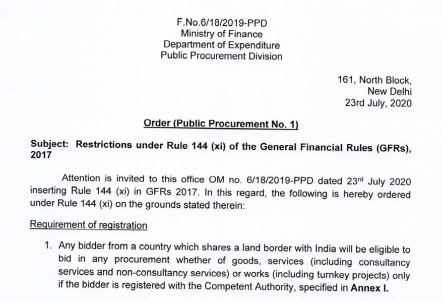 7月23日,印度财政部宣布修改《财务通则》,称在今后所有政府采购中,邻国竞标企业需要提前在主管当局注册,并接受安全调查。这意味着,互联网以外的企业也开始收到越来越多的限制。