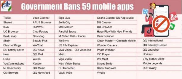 10天之后,传言成真。北京时间6月29日23点17分,印度电子与信息技术部发布声明称,将封禁包括 TikTok、微信、快手在内的59款移动应用。