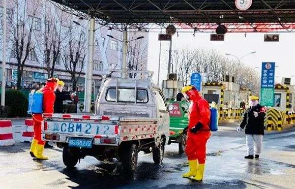 疫情期间新发地工作人员为车辆消毒。(图片来源:北京新发地)