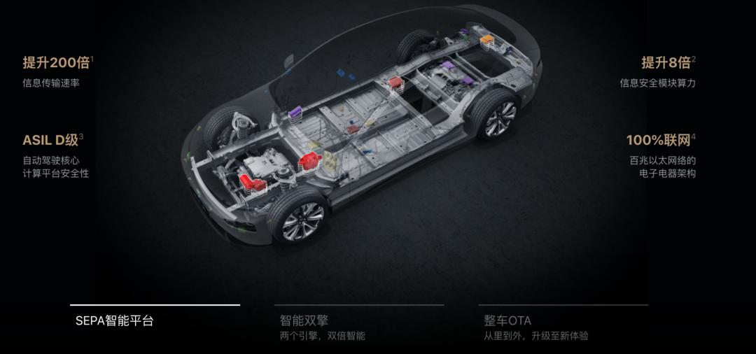 在电池方面,小鹏P7能量密度达到了170Wh/kg,P7智行版续航里程更是达到了706公里,这超过了特斯拉旗下所有车型,也是国内纯电动汽车能实现的最长续航里程。