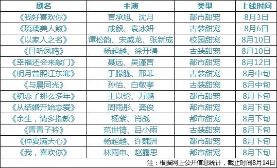 超10部甜宠剧扎堆8月 谁更容易出圈?