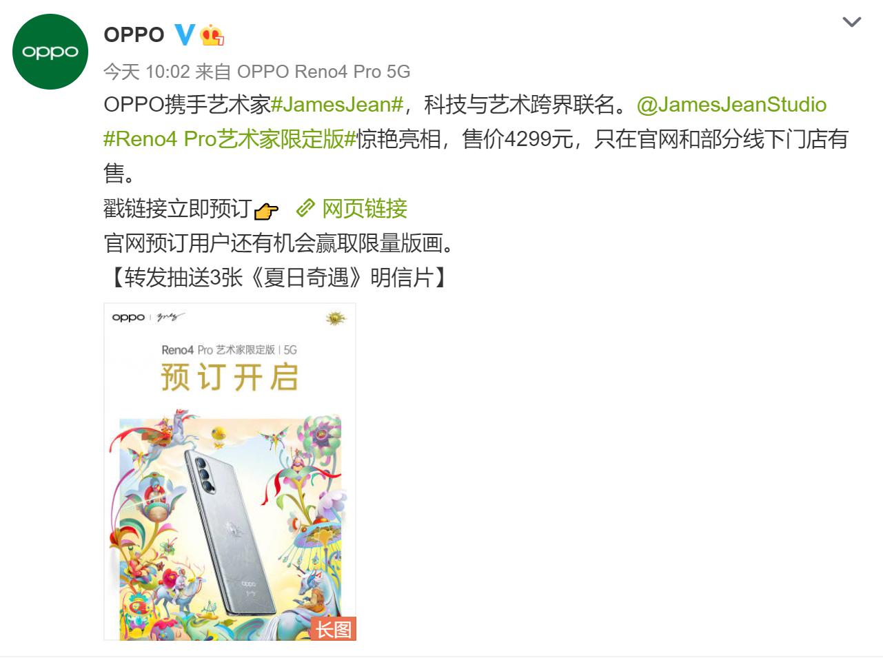 OPPO Reno4 Pro艺术家限定版发布,售价4299元