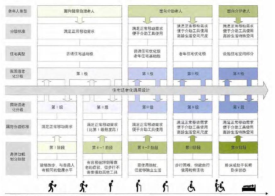 日本将适老化设计分为5个等级,以不同的级别对应老年人不同阶段的住宅和设施的适老化实施程度。随着层级的提高,适老化部品集成和技术应用同步提高,顺从居住者的生活方式和生命周期,使房间的改造具备一定的灵活性。我们在参考这种方式时,特别需要注意在事先做好上门评估的工作。