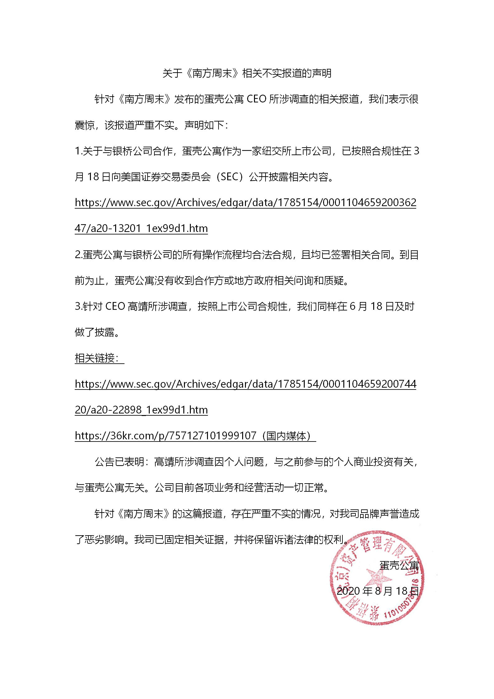 蛋壳公寓CEO被查疑涉国有资产问题?蛋壳回应:报道严重不实