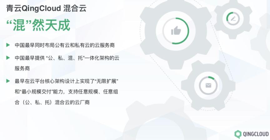沈鸥表示,青云QingCloud目前已经能够很好的完成企业对混合云的诉求。