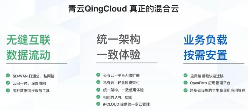 青云QingCloud认为,真正的混合云需要满足三大技术诉求: