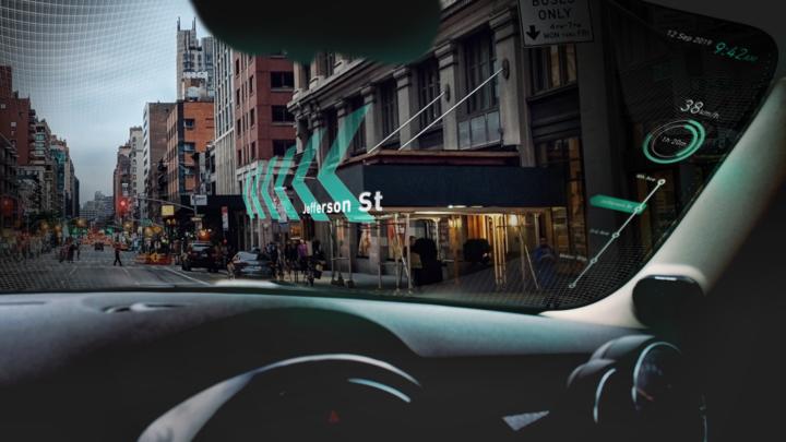 在汽车领域,很多车厂也希望借助透明屏的特性,将信息直接投射到挡风玻璃上,从而在不遮挡视线的前提下,让驾驶员能实时关注到地图、车速等数据。