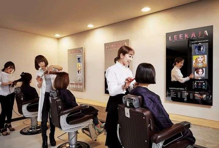 韩国 Leekaja Hair Bis 曾希望将三星的镜面 OLED 屏应用在美发沙龙门店中。图片来自:OLED-info