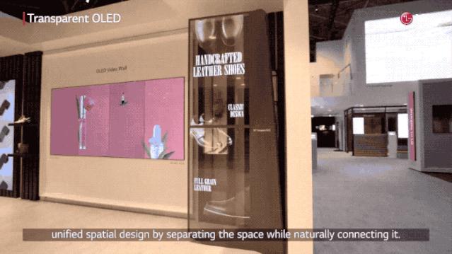 打个比方,很多高端商超的橱窗原本就会使用大量玻璃,以营造一种简洁、通透的视觉观感。现在 LG 就希望让这些橱窗玻璃全部换成透明 OLED 屏,让路过的顾客既能看到产品,也能在玻璃上看到实时变化的信息,这也不失为一种增进体验的手段。