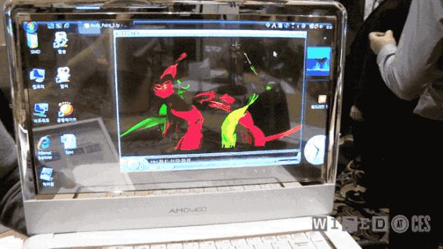 三星在 2010 年 CES 上展示的透明笔记本。图片来自:Wired