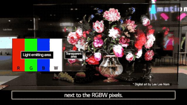 LG 在一则视频中简单解释了透明 OLED 屏的实现原理——它在原有的红绿蓝白四像素基础上,新增了一种「透明子像素」。这种像素并不会发光,也不会参与到图像显示,但它自身却是由高透明材料制成的。