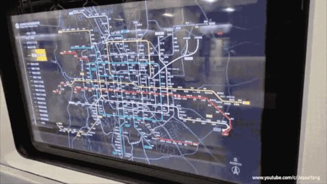运用了 OLED 屏的北京地铁「魔窗」,但尚处于测试阶段。图片来源:Jesse Yang