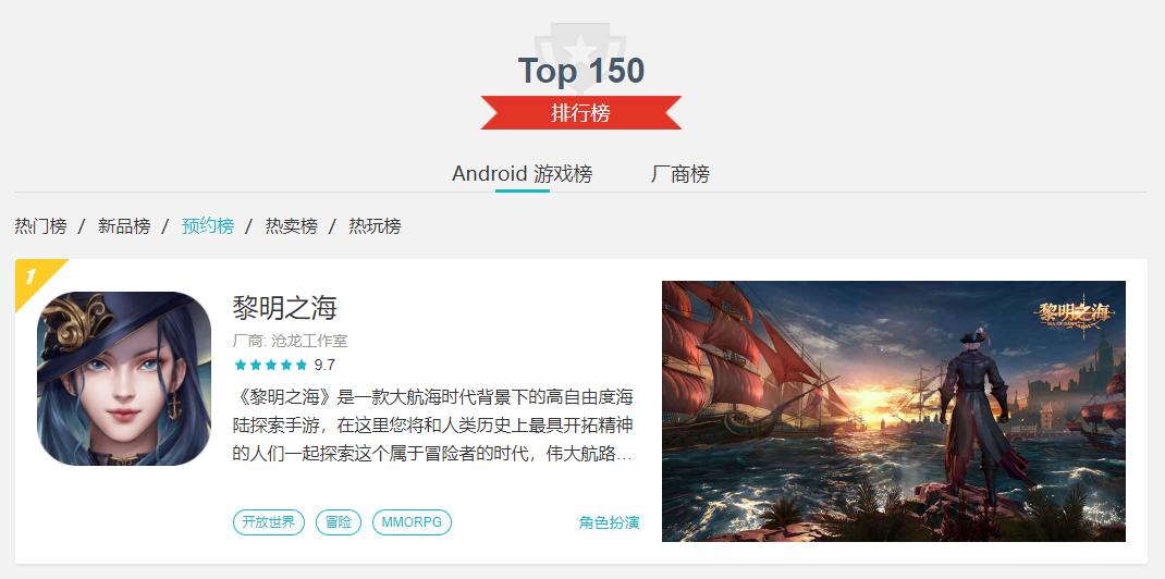 截至目前,《黎明之海》在TapTap平台的用户评分已达9.4分,在Taptap预约开启首日就冲上了预约榜第一,属于精品类游戏。在正式开放下载前获得这样的评分和成绩,也意味着玩家对于这款航海冒险MMORPG游戏抱以了极大的期望。