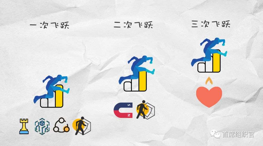 当核心业务流程+任务协同系统+人才选育用留系统相互咬合之后,公司的文化也就塑造得差不多了。文化的塑造和整合,虽然是贯穿在前面几次飞跃的过程之中,但也可以算是第三次飞跃。到那个时候,这个公司才算是真正实现了从团伙到组织的蜕变。在下一轮外部环境变化后,组织会再迎来新一轮的迭代。
