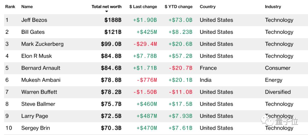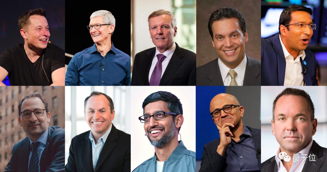 除了马斯克、库克之外,还有哪些公司高管上榜呢?彭博这张图一目了然: