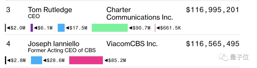 库克之后,就是美国第二大通信供应商Charter Communications的老板Tom Rutledge,总收入为1.16亿美元,期权奖励就有9千万美元,占总收入的78%。