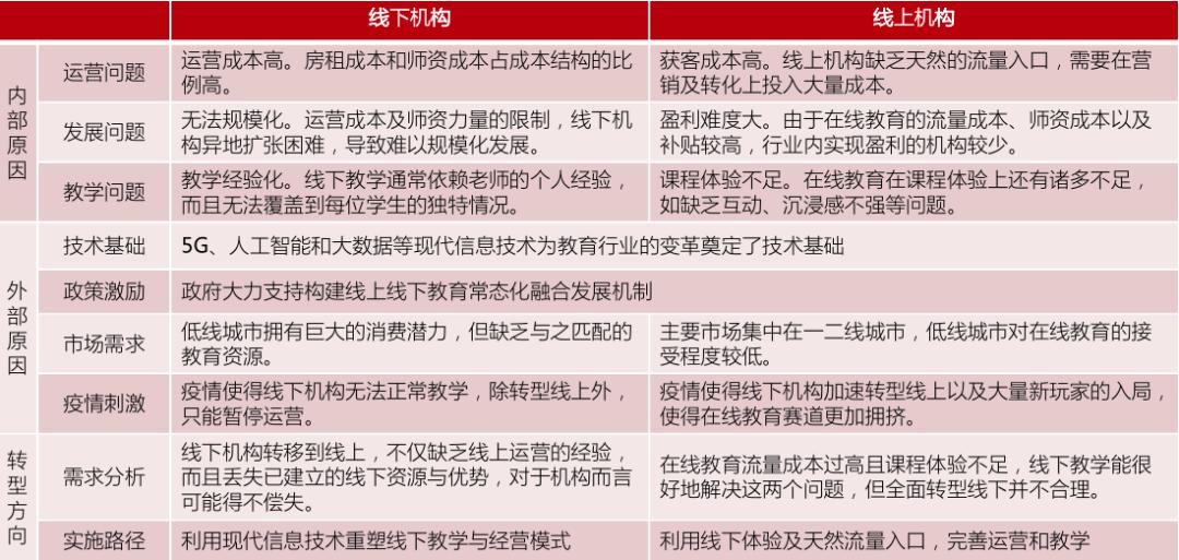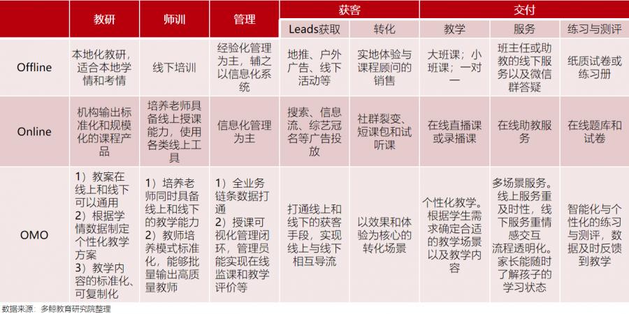 总而言之,OMO 模式的转型因素已基本成熟。对于线下机构和线上机构,无论从内部原因,还是外部原因,各大机构都有充足的理由以及必需的条件进行 OMO 转型。