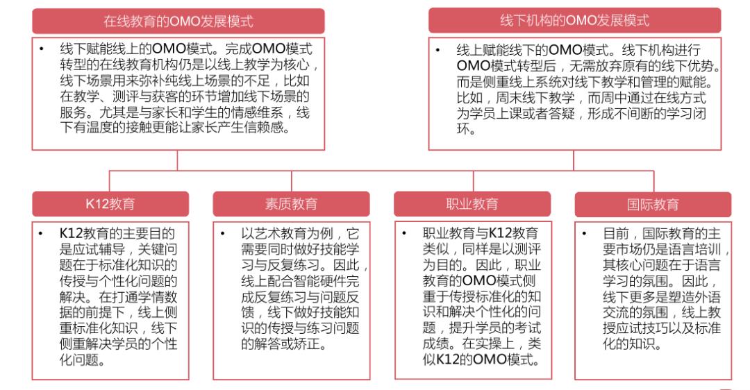 但总体来说,如新东方、好未来等头部机构对于 OMO 模式还处于探索阶段,而大多数的中小机构还处于观望阶段。