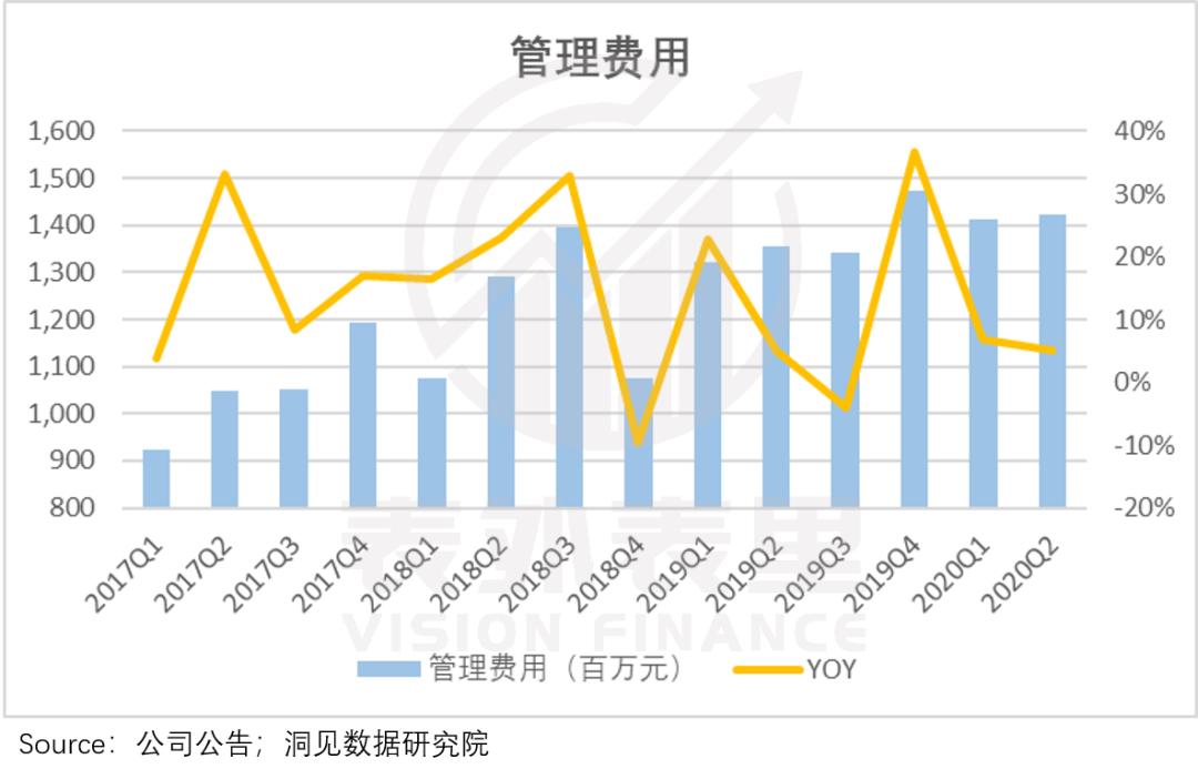 当然了,这种超出常理的费用结构,造成的原因还尚不明确,但考虑到这种反复的情况是从2018年Q4开始,或与明尼苏达事件的负面影响有关,该事件后,京东低调很多,相应地各项管理费用支出也有所收缩。