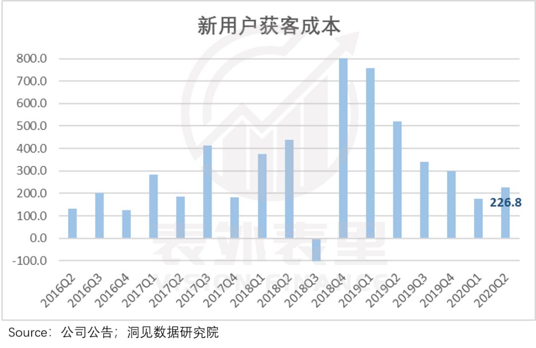 2020Q1新用户获客成本为175.9元,Q2为226.8元。(Q1是疫情期间的受益,在Q2不可能完全复制)