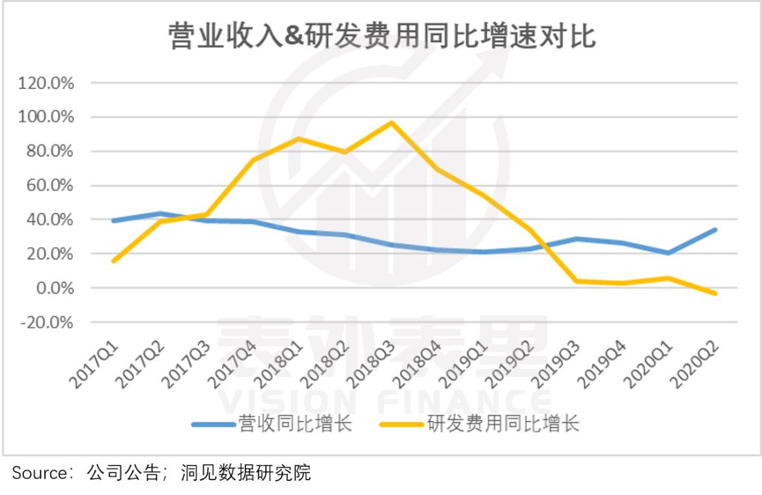 我们注意到,京东的研发费用增速和营业收入增速从2019Q3后,出现Gap,且差值在Q2加大。