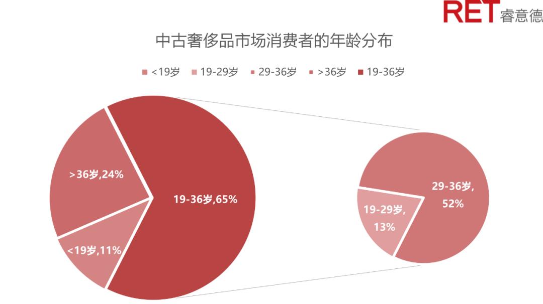 2019年,中古奢侈品消费者中,19-36岁者占总数的65%。而29-36岁的消费者大多数已经拥有稳定的经济收入,属于有能力购买奢侈品的消费群体。针对中古业者的调查表明,中古消费者与一手品消费者有一定重叠性。