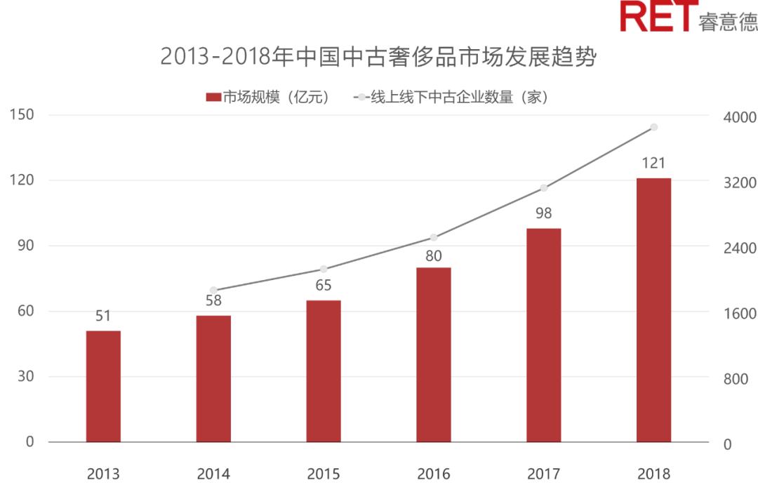 国内最早的实体中古店于2005年前后开出,2008年中古奢侈品线上交易平台开始成立。2017年末2018年初,中古业者普遍感到,线下中古店快速增长,热门商区出现多家门店,单体店主向其它城市或区域开拓新店。2018年被认为是国内“二手奢侈品交易元年”。