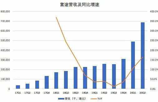 2020年Q2,富途毛利5.3亿港元(约6890万美元),同比增长172%,环比增长43%;实现净利润2.36亿港元(约3130万美元),同比增长327%。