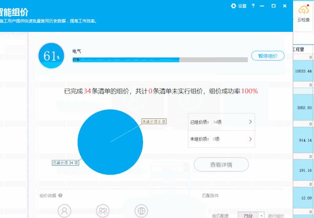 再看一个智能组价的功能,简单地说就是,把你自己平时组价的清单当成模板,上传到云平台,随着日积月累,当出现相似的清单时,就可自动组价了,最后再检查调整就可以了。