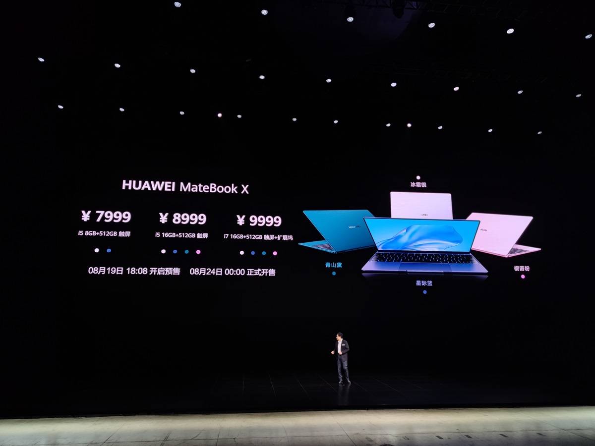 36 氪获悉,华为发布新款MateBook X,外框小于A4纸,轻至1kg,最厚处仅13.6mm,华为MateBook X采用业界首款3K悬浮全面屏,屏占比达到90%,拥有星际蓝、樱语粉、冰霜银、青山黛四款配色,官方售价7999元起。