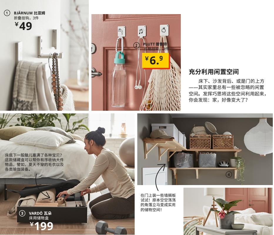 宜家同样在这部分提出了不少整理收纳的技巧,和近藤麻理惠不一样的是,宜家强调的是通过家具实现整理收纳,如利用篮子等收集杂物,利用床下、沙发背后、甚至是墙上等闲置空间收纳杂物。