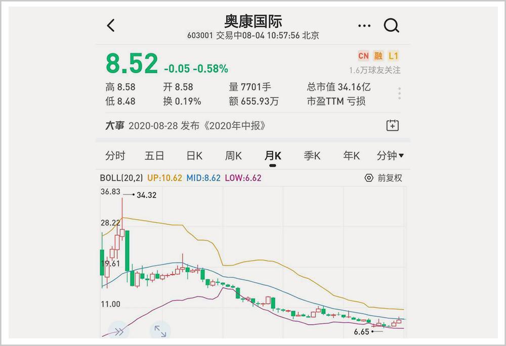 可是,2015年以后,奥康国际股价开始了漫长的阴跌。截至发稿,奥康国际市值为35亿元,较巅峰时缩水了85%,大约只有康华生物的十分之一。