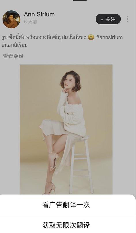 追星软件Foll则主打搬运,在软件上关注自己喜欢的明星后,不必翻墙便能同步get到他/她的ins动态。同时软件自带翻译功能,不过翻译服务是要靠拉新或看广告获取的。