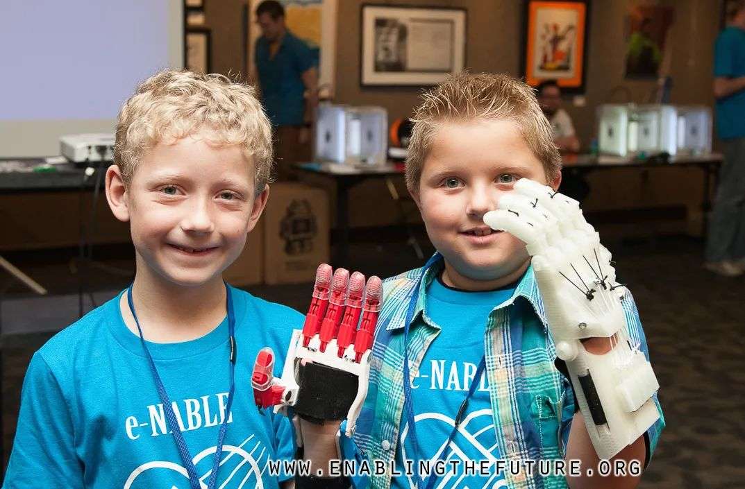 e-NABLE是一个由三万名志愿者组成的国际化的团队。他们设计并3D打印义肢和义手,再免费发放给有需要的人们,目前为止已经做了超过一万个。团队运营费用大多是志愿者们自掏腰包。