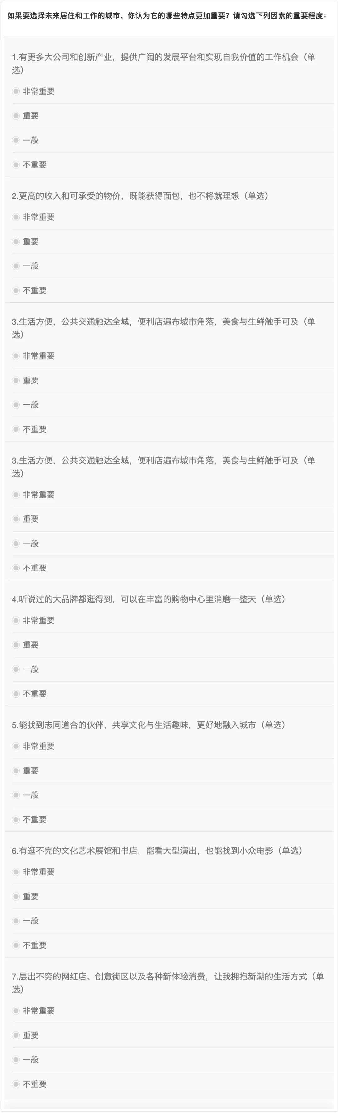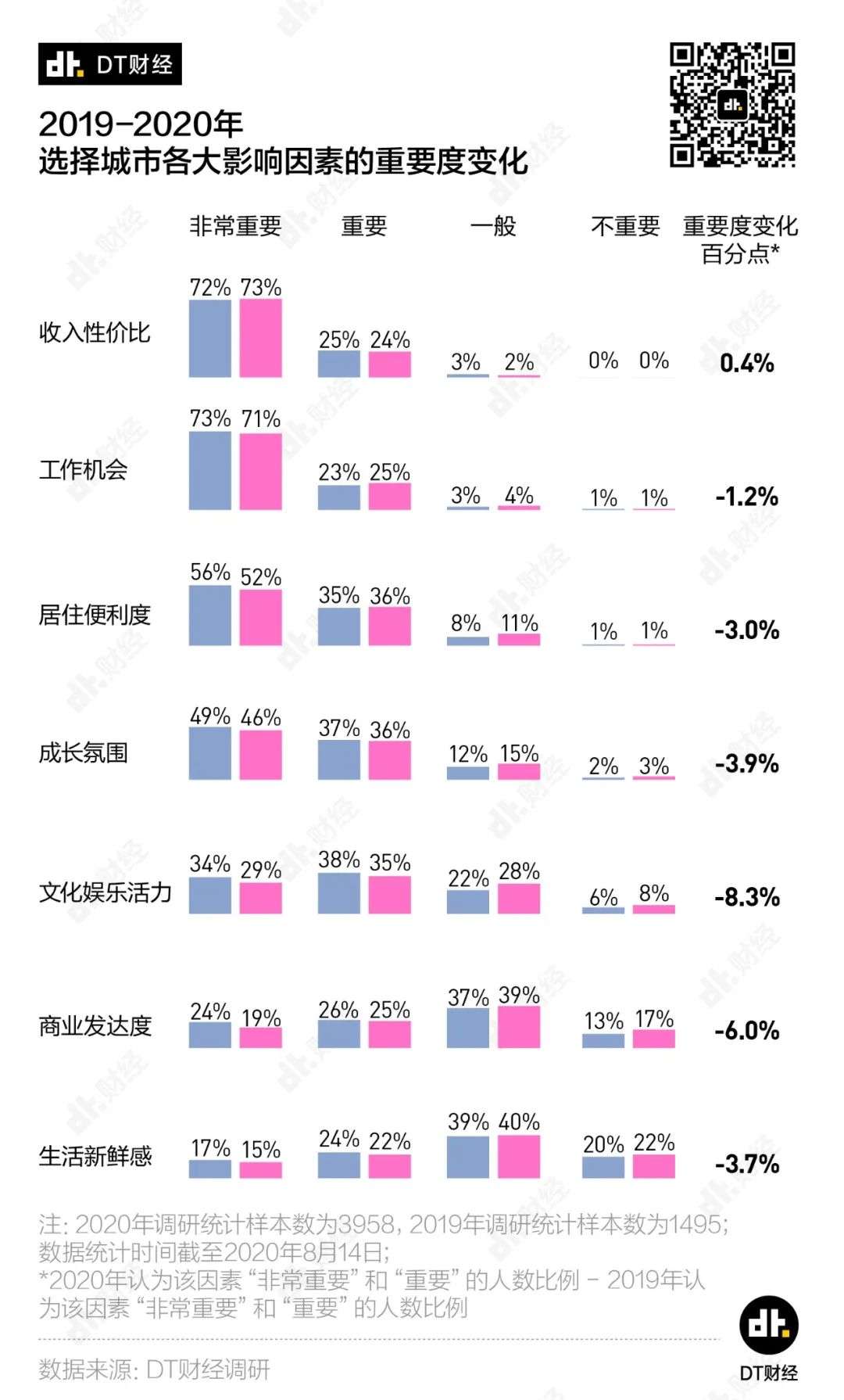 在前文我们提到,今年有更多受访者认为,文娱活力、商业零售设施以及共同成长氛围,对于选择一个城市来说,并没有那么重要。