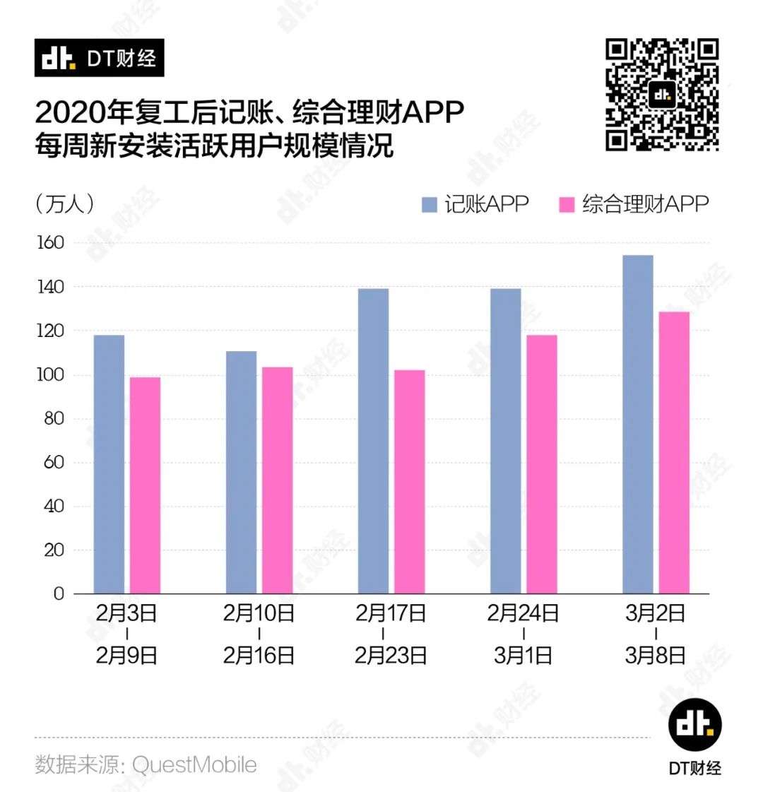 同时,我们看到今年复工以来,记账、综合理财APP的新增活跃用户有了明显的增长。