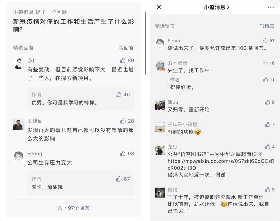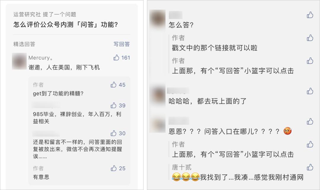 问答功能上线后,很多公众号创作者都惊呼,留言功能回来了。观察发现,问答功能确实与留言功能十分相似。